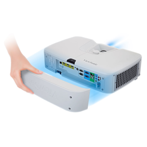 Nút nguồn chính giữa, dễ sử dụng có chức năng như trung tâm điều khiển để quản lý máy chiếu. Cùng với chức năng bật và tắt máy chiếu, nút này cũng là một bộ thu hồng ngoại và cho biết có bất kỳ dongle nào được kết nối với ngăn PortAll® hay không thông qua một đèn LED làm sáng nút nguồn.