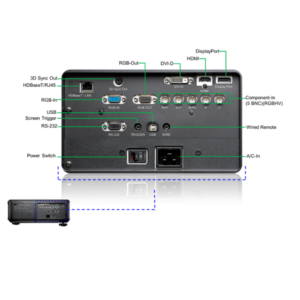 Cổng kết nối: VGA-In (15pin D-Sub), HDMI, Display Port, DVI-D, Component (5 BNC) (RGBHV), Component (YPbPr BNC x 3), VGA-Out (15pin D-Sub), RJ45, IP Telnet Trong khả năng RJ-45, 12V Trigger, kích hoạt cổng Type, RS-232, 3D Sync Out, USB B, từ xa Jack (dây từ xa)
